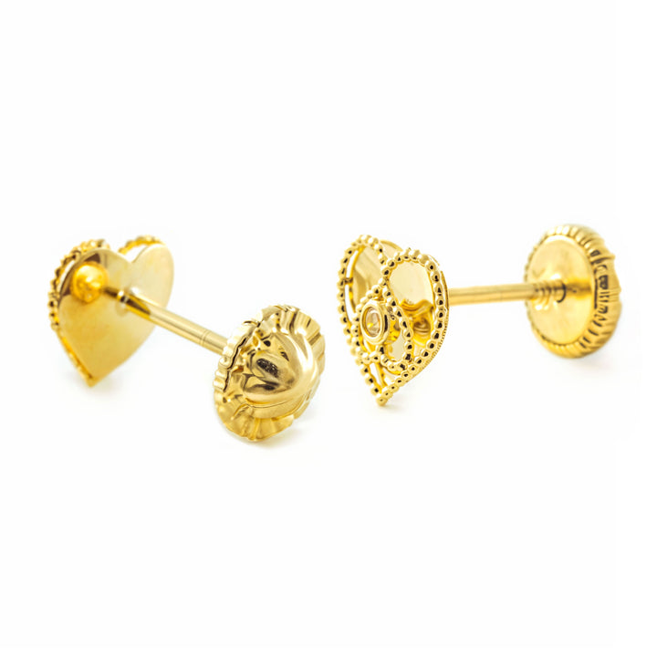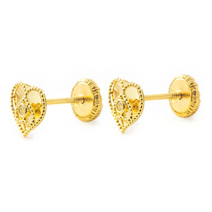 Découvrez la délicatesse et le charme des boucles d'oreilles pour fille en or jaune 9K en forme de cœur. Ce design exclusif de Mondepetit allie la chaleur de l'or à l'éclat subtil d'une pierre zircon, créant un bijou parfait pour des occasions spéciales ou pour le quotidien. La finition brillante et texturée rehausse la luminosité et l'attrait de chaque boucle d'oreille, apportant une touche de sophistication à tout look enfantin.