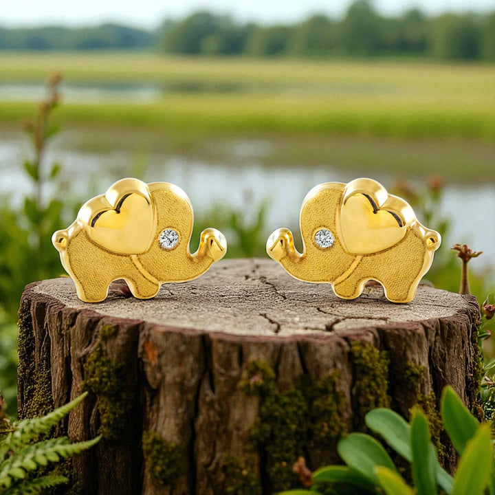 Boucles d'Oreilles Enfant Éléphant Zircone Mate et Brillant Or Jaune 9 Carats