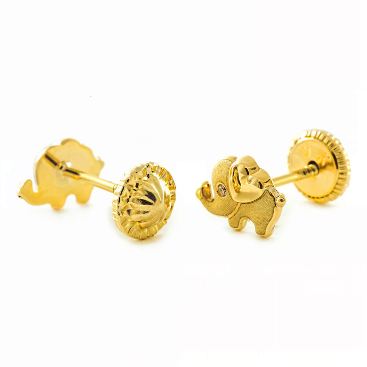 Pendientes Niña oro Amarillo 9K Elefante Piedra Circonita Mate y Brillo