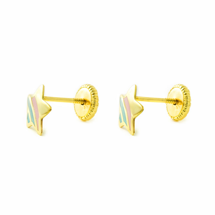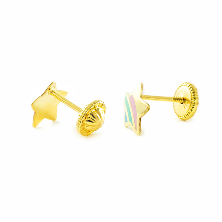 Pendientes Niña oro Amarillo 9K Estrella Esmalte Multicolor Brillo