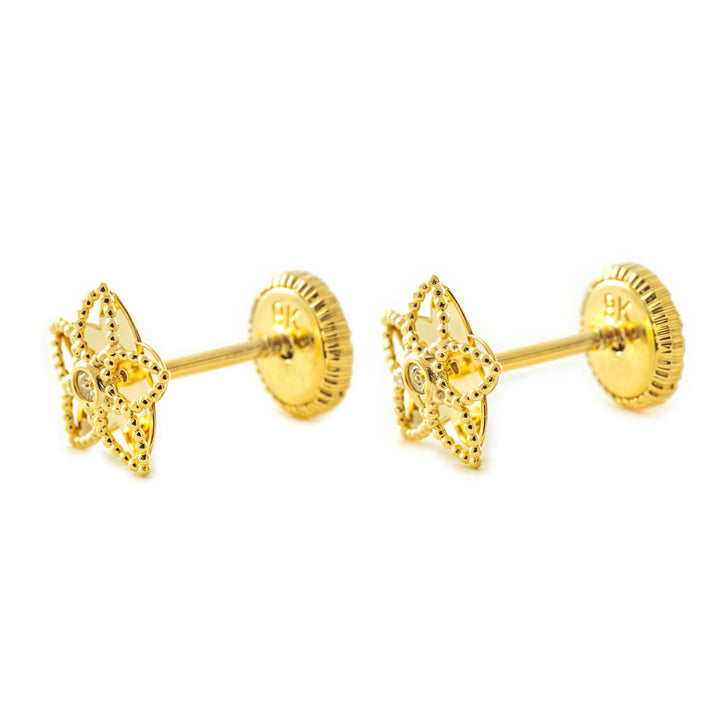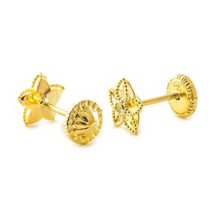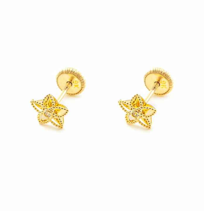 Découvrez la délicatesse et le charme des boucles d'oreilles pour fille en or jaune 9K en forme d'étoile. Ce design exclusif de Mondepetit allie l'élégance de l'or à l'éclat subtil de la zircon, créant un bijou parfait pour des occasions spéciales ou pour le quotidien. Sa finition brillante et texturée apporte une touche moderne et sophistiquée, idéale pour rehausser n'importe quel look enfantin.