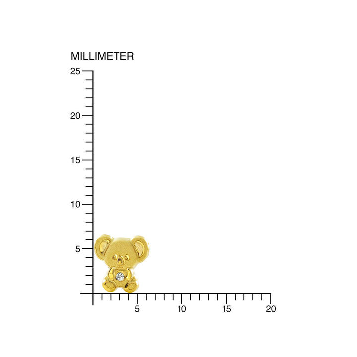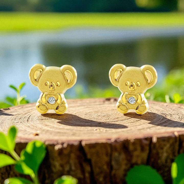 Boucles d'Oreilles Enfant Koala Pierre Zircone Mate et Brillant Or Jaune 9 Carats