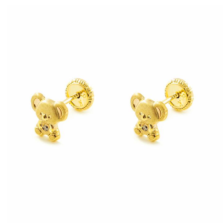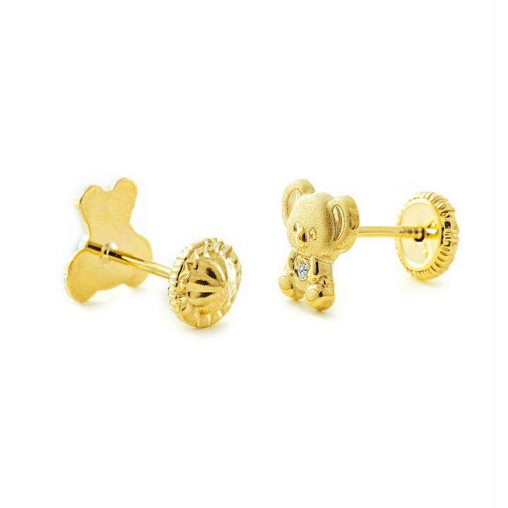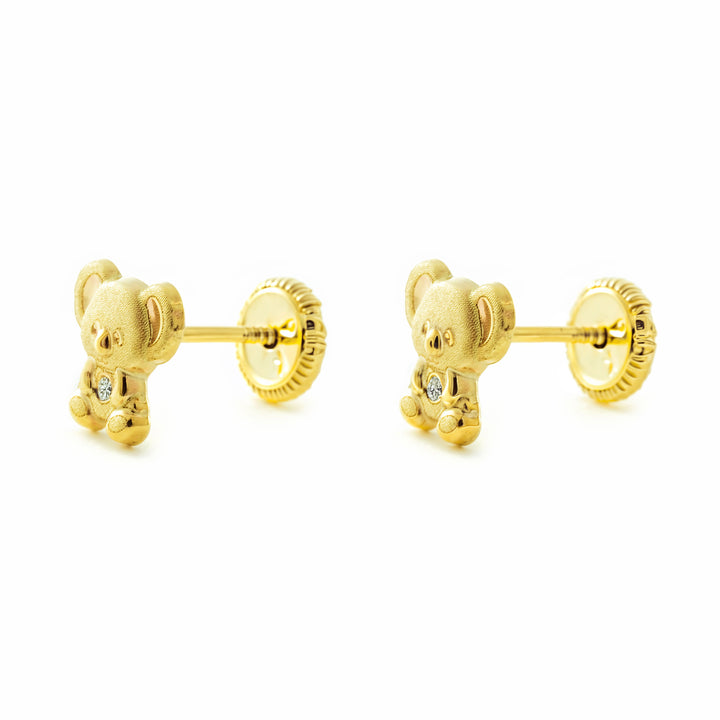 Pendientes Niña oro Amarillo 9K Koala Piedra Circonita Mate y Brillo