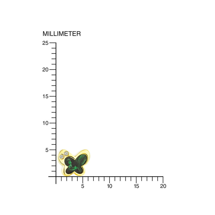 Le papillon symbolise la transformation et la joie, tandis que la malachite verte apporte une nuance naturelle et vibrante. L'or jaune de 9 carats garantit durabilité et un éclat spécial, parfait pour les occasions spéciales ou pour le quotidien.