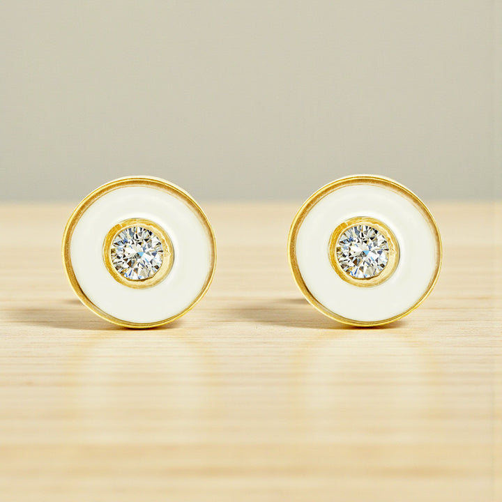 Pendientes Niña oro Amarillo 9K Redondo Nácar Madre Perla Brillo