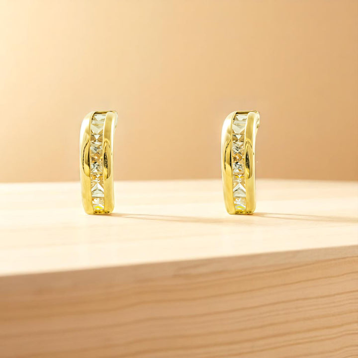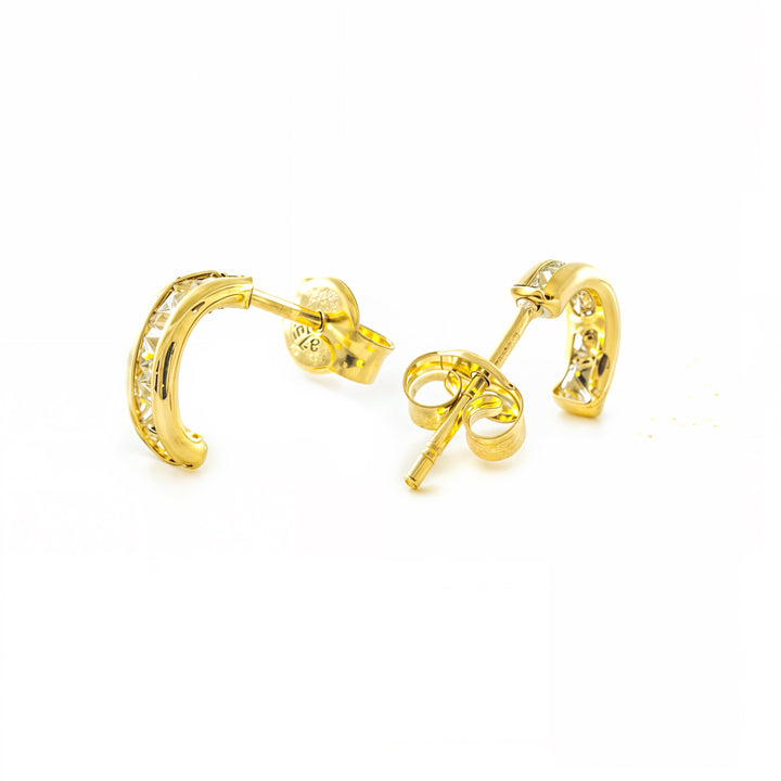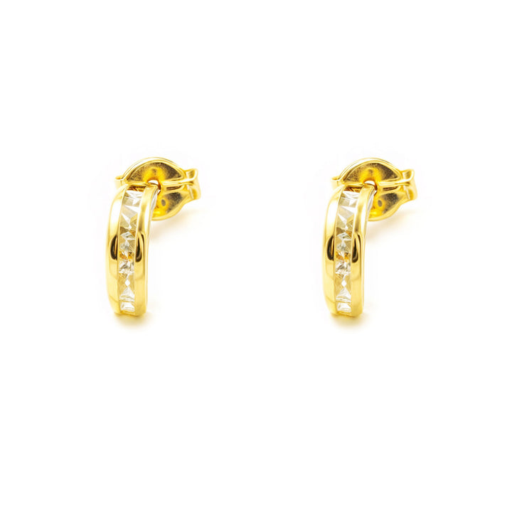 Boucles d'Oreilles Femme Enfant Arc Pierre Zircone Brillant Or Jaune 9 Carats