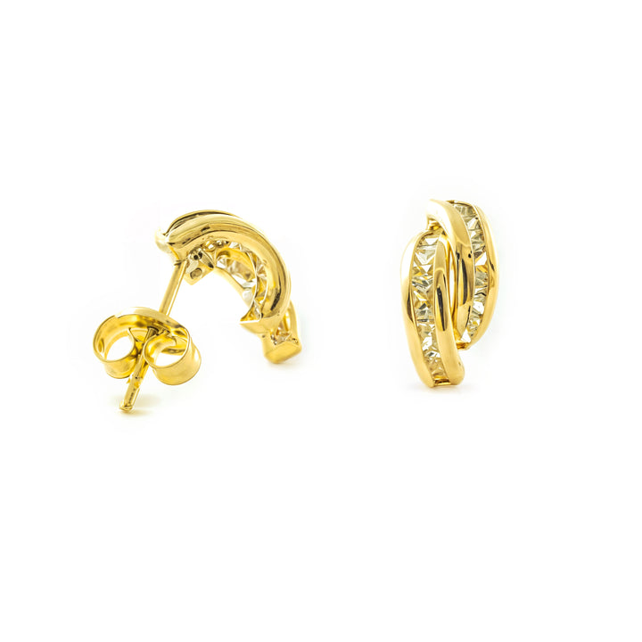 Boucles d'Oreilles Femme Enfant Arc Pierre Zircone Brillant Or Jaune 9 Carats