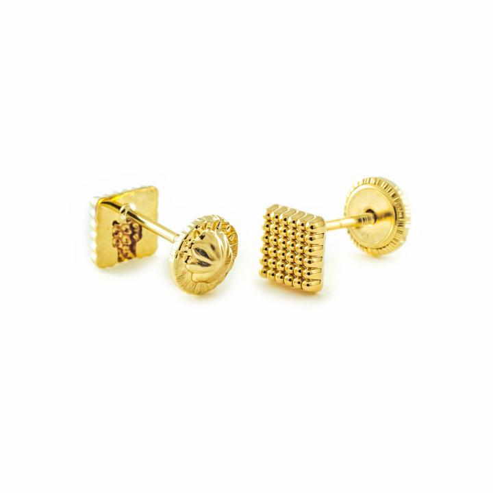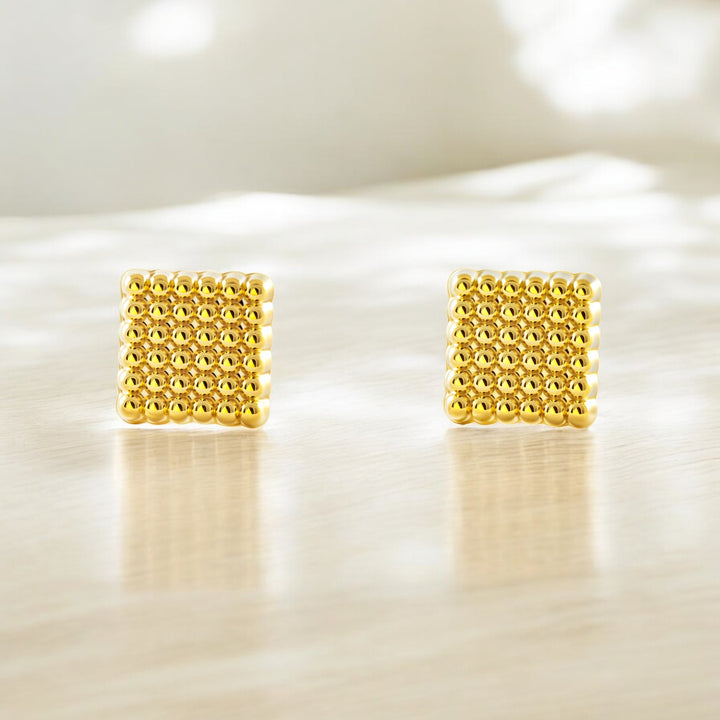 Ces boucles d'oreilles ont été soigneusement élaborées en or jaune de 9 carats, garantissant durabilité et un éclat exceptionnel. Leur forme carrée et leurs dimensions compactes les rendent confortables et polyvalentes, idéales tant pour les filles que pour les femmes à la recherche d'un style délicat et moderne.