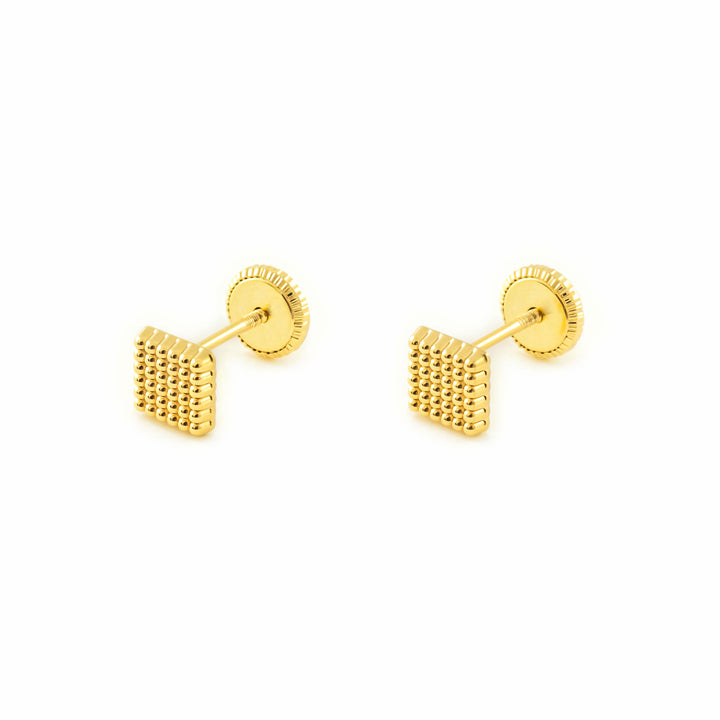 Pendientes Niña Mujer oro Amarillo 9K Cuadrado Brillo