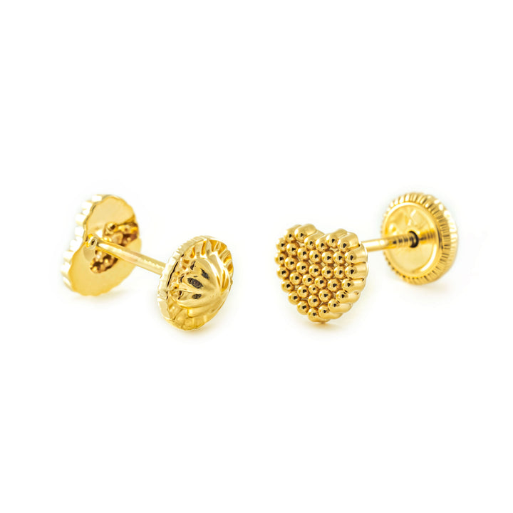Découvrez la délicatesse et le charme des boucles d'oreilles pour filles et femmes en or jaune 9K en forme de cœur. Ce design intemporel est parfait pour ceux qui recherchent une touche d'élégance et de douceur dans leur quotidien. Son fini brillant rehausse la luminosité de l'or, les rendant idéales pour toute occasion spéciale ou pour un usage quotidien.