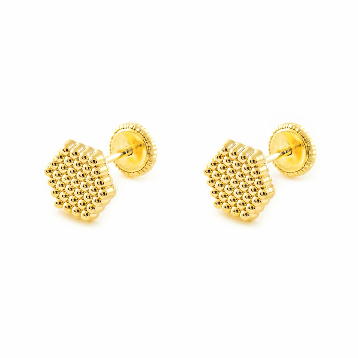Pendientes Niña Mujer oro Amarillo 9K Hexagono Brillo