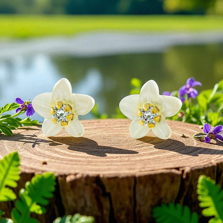 Pendientes oro Amarillo 18K Flor Nácar Madre Perla Brillo