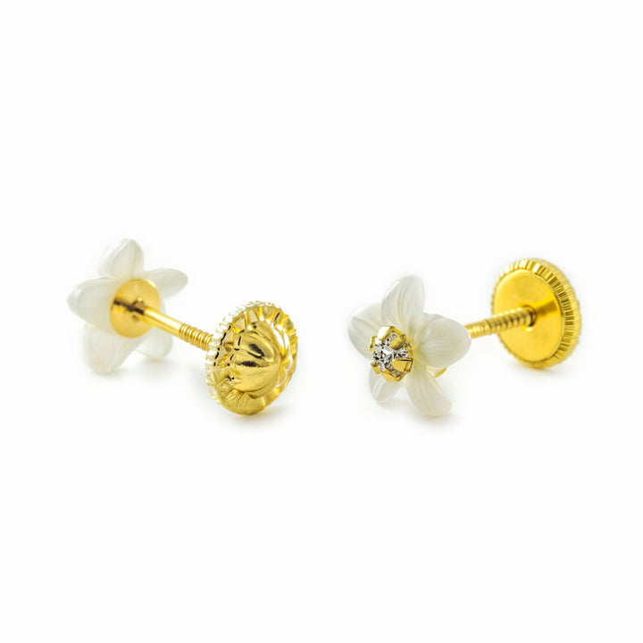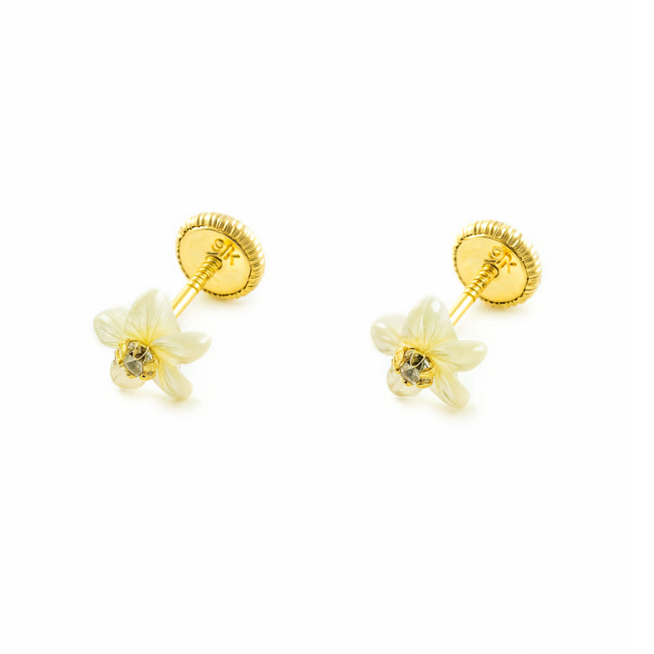 Pendientes oro Amarillo 9K Flor Nácar Madre Perla Brillo
