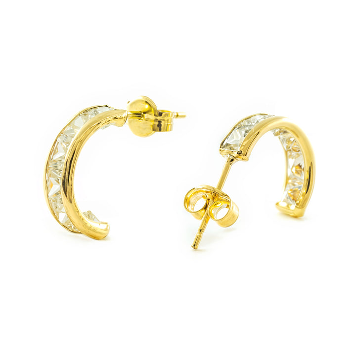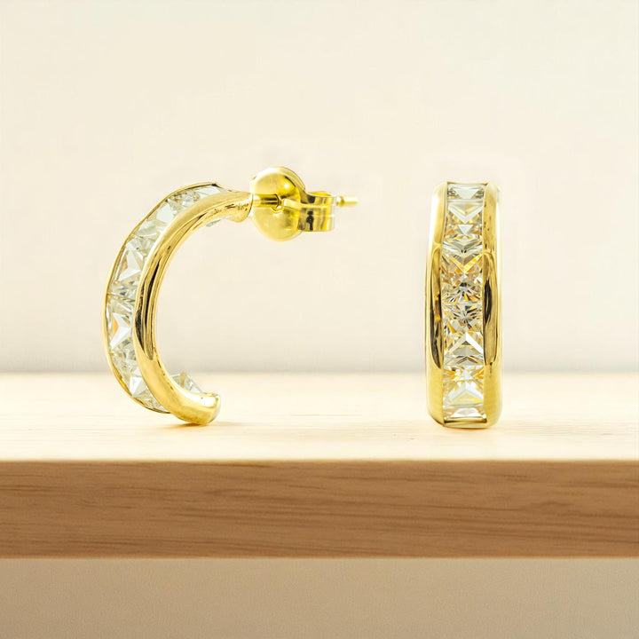 La finition brillante de l'or jaune met en valeur la beauté des zirconiums, créant un jeu de lumières qui illumine votre visage. Leur taille discrète et confortable en fait l'accessoire parfait pour les femmes à la recherche de style et de polyvalence dans leurs bijoux.