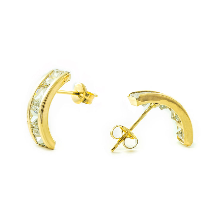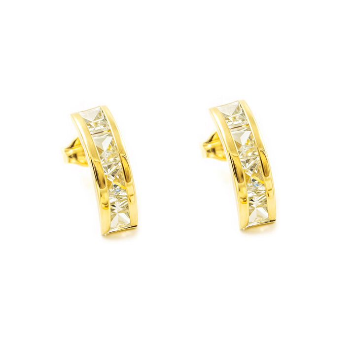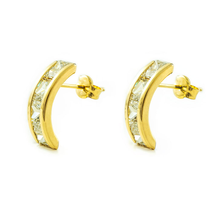 Pendientes Mujer oro Amarillo 9K Arquillo Arco Piedra Circonita Brillo
