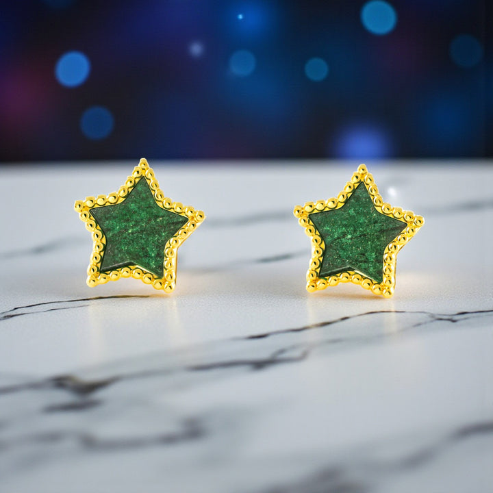 Découvrez l'élégance unique des boucles d'oreilles pour femmes en or jaune 9K en forme d'étoile et avec une pierre de malachite verte. Leur design combine l'éclat de l'or avec la texture naturelle de la malachite, créant un bijou sophistiqué et moderne idéal pour toute occasion. Le contraste entre le doré et le vert intense apporte une touche de distinction et de fraîcheur à votre look quotidien.