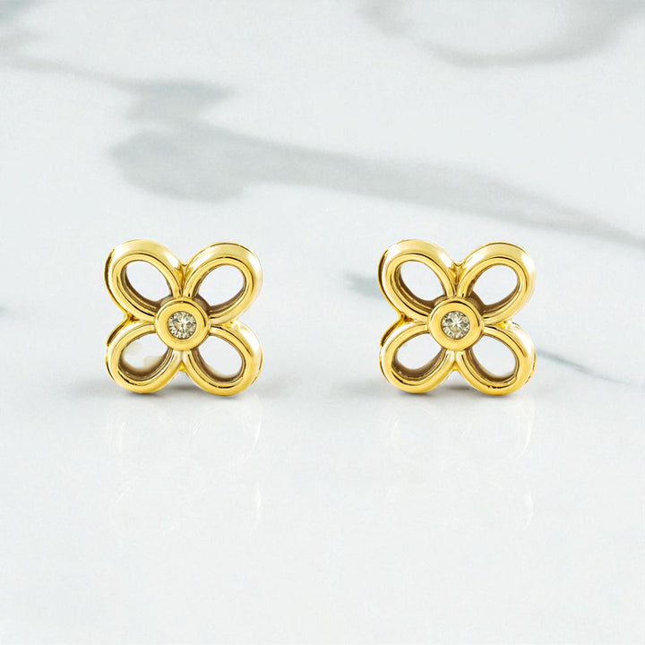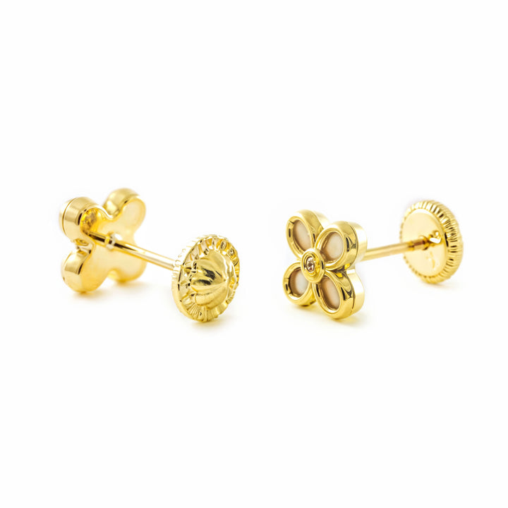 Pendientes oro Amarillo 9K Cuatrebol Nácar Madre Perla Brillo