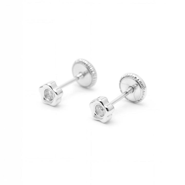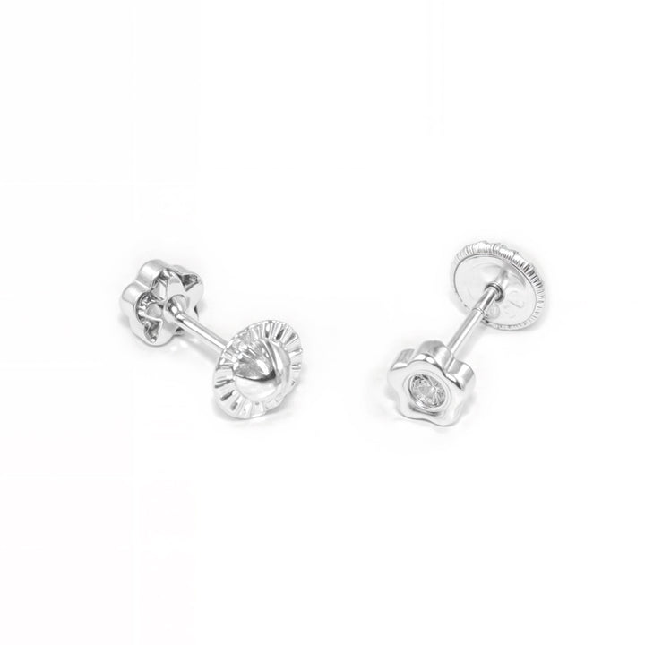 Boucles d'Oreilles Bebe Enfant marguerite fleur Zircone Or Blanc 18 Carats