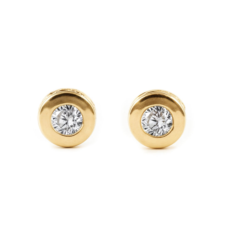 Boucles d'Oreilles Bebe Enfant Ronde Zircone Or Jaune 18 Carats