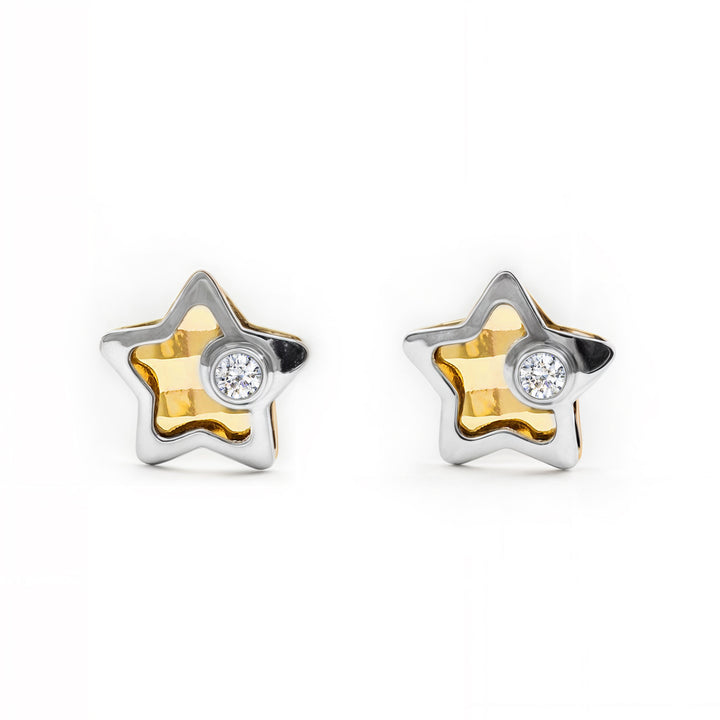 Découvrez l'élégance et le charme de nos Boucles d'Oreilles Bébé Fille Or Bicolore 9K Étoile Zirconia Brillante. Conçues spécialement pour les petites, ces boucles d'oreilles allient la douceur de l'or bicolore à l'éclat éblouissant de la zirconia, créant une pièce unique qui met en valeur la beauté de chaque fille. Leur design en forme d'étoile ajoute une touche ludique et moderne, parfait pour toutes les occasions.