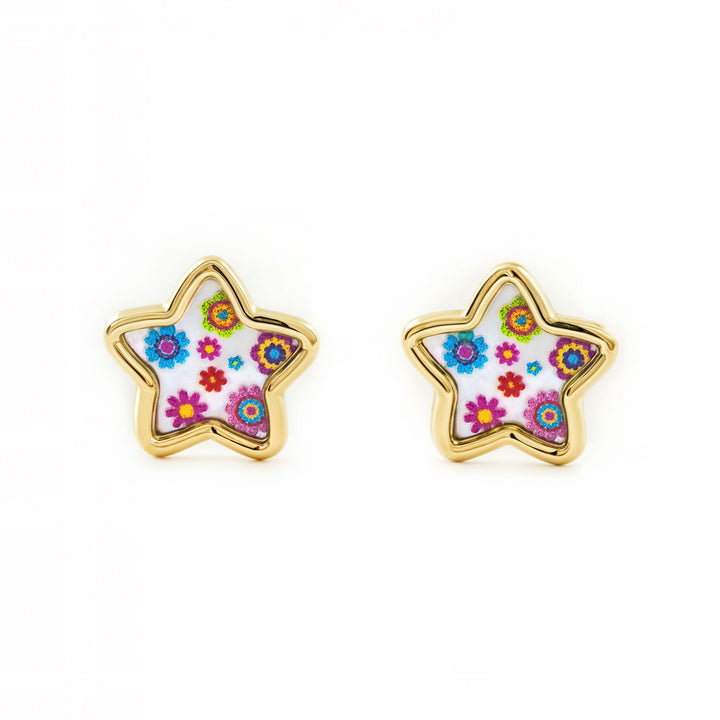 Boucles d'Oreilles Fille Enfant Nacre Étoile Émail multicolore Or Jaune 9 Carats