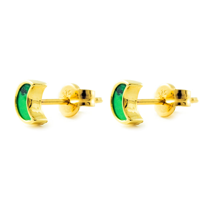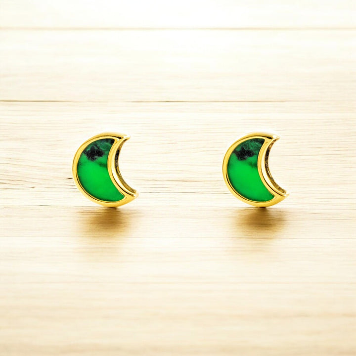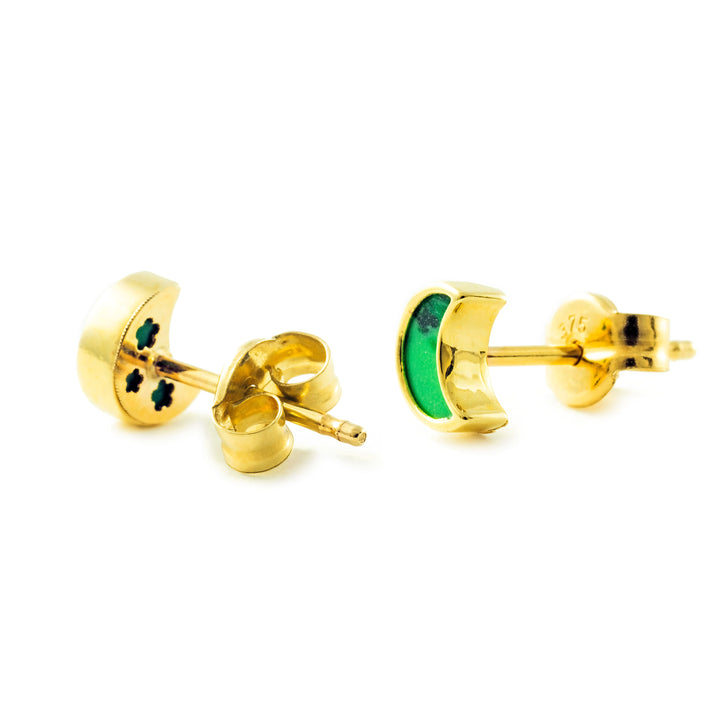 Fabriquées en or jaune de 9 carats, ces boucles d'oreilles ne sont pas seulement visuellement impressionnantes, mais aussi durables et résistantes. Leur design en forme de lune évoque un sens de mystère et de charme, idéal pour ceux qui apprécient un style distinctif. La combinaison de l'or et de la malachite crée un contraste harmonieux qui rehausse l'éclat et la beauté de chaque gemme.