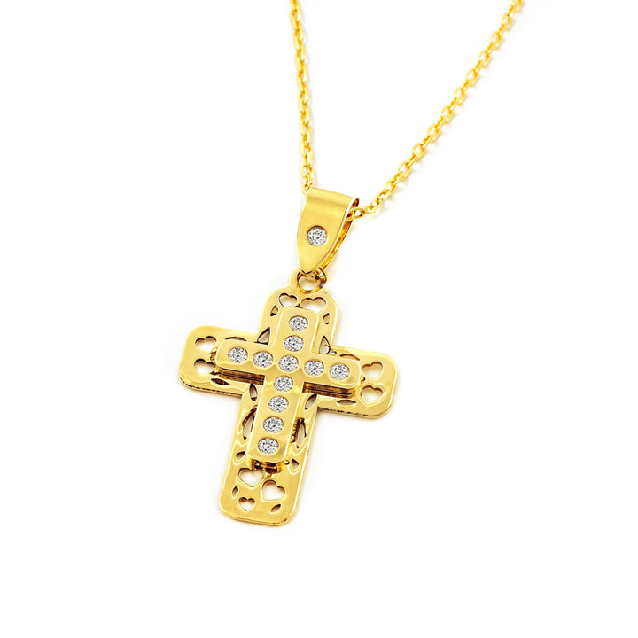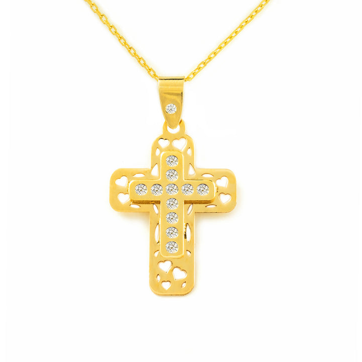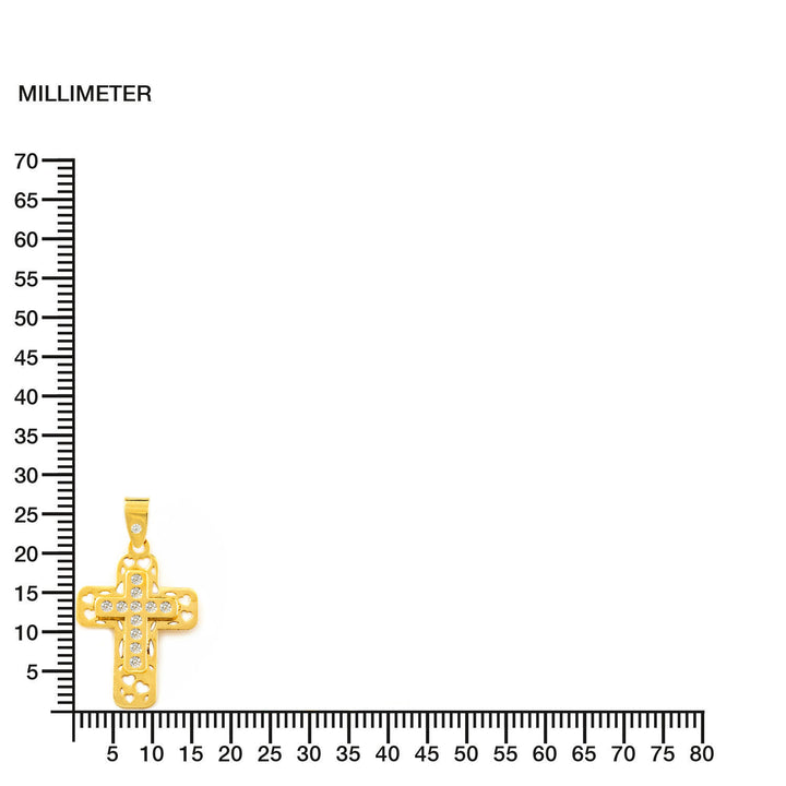 Fabriquée en or jaune de haute qualité, cette croix n'est pas seulement un symbole de foi, mais aussi une déclaration de style. Son fini luxueux et poli met en valeur la beauté de chaque zirconia, ce qui en fait la pièce parfaite à porter en toute occasion, que ce soit pour un événement spécial ou pour un usage quotidien.