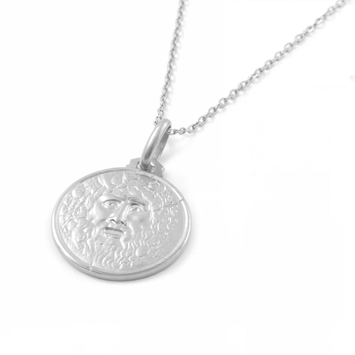 Fabriquée en argent 925 de haute qualité, cette médaille se distingue par son fini mate et brillant, qui met en valeur la beauté naturelle du métal et apporte sophistication à n'importe quel look. Sa taille de 18 mm en fait un bijou polyvalent, parfait à porter seul ou accompagné d'autres pièces.